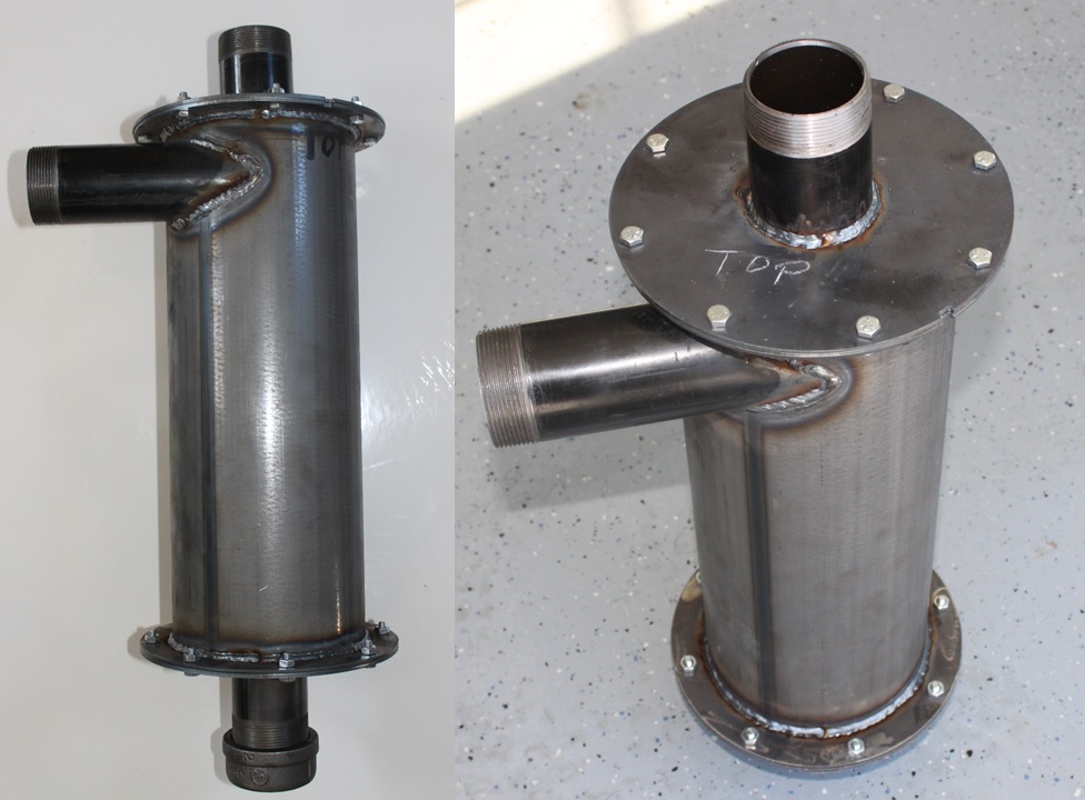 - 1.5 inch pipe inlets/outlet with a five inch swirl body. ($75 inlet and swirl tube only, $125 unwelded kit, $225 professionally welded)
